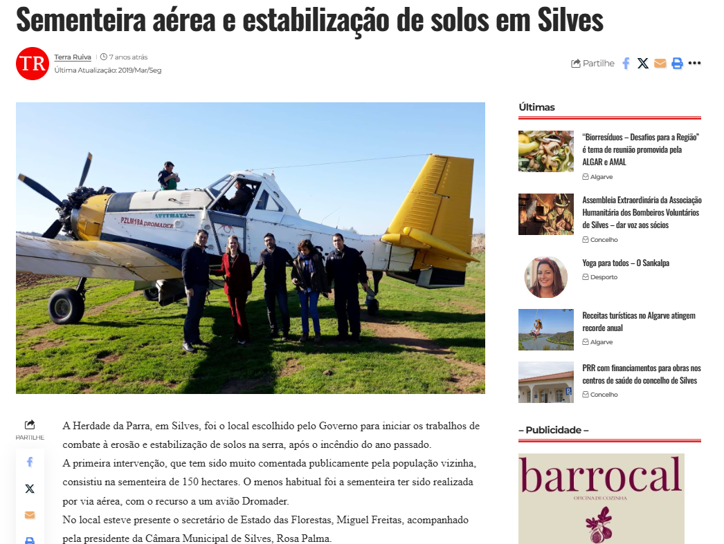 Estas missões permitiram a dispersão aérea de sementes, promovendo a recuperação florestal, a regeneração da biodiversidade e a reabilitação sustentável de áreas ardidas.