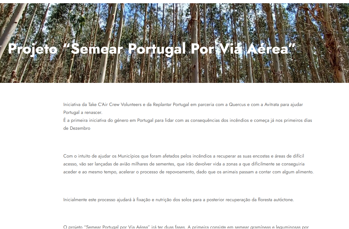 A Avitrata apoiou a iniciativa “Semear Portugal por Via Aérea”, contribuindo para operações de reflorestação aérea em zonas afetadas por incêndios e de difícil acesso.