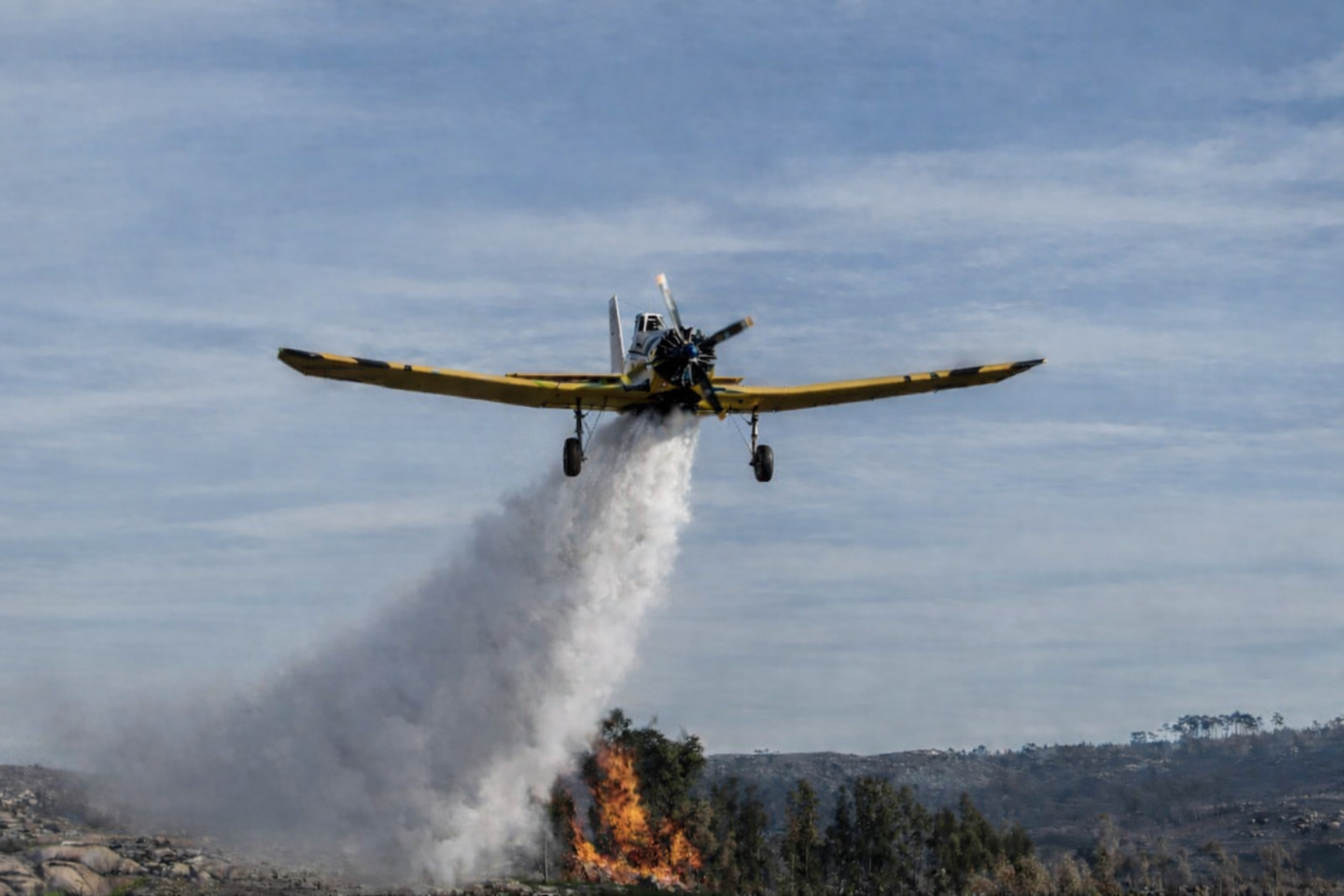 A operação terrestre das nossas aeronaves permite a utilização de diferentes agentes de supressão — água, espumíferos e retardantes — aumentando a eficácia do combate ao incêndio, atrasando a progressão das frentes de fogo e permitindo o controlo em fases mais precoces.